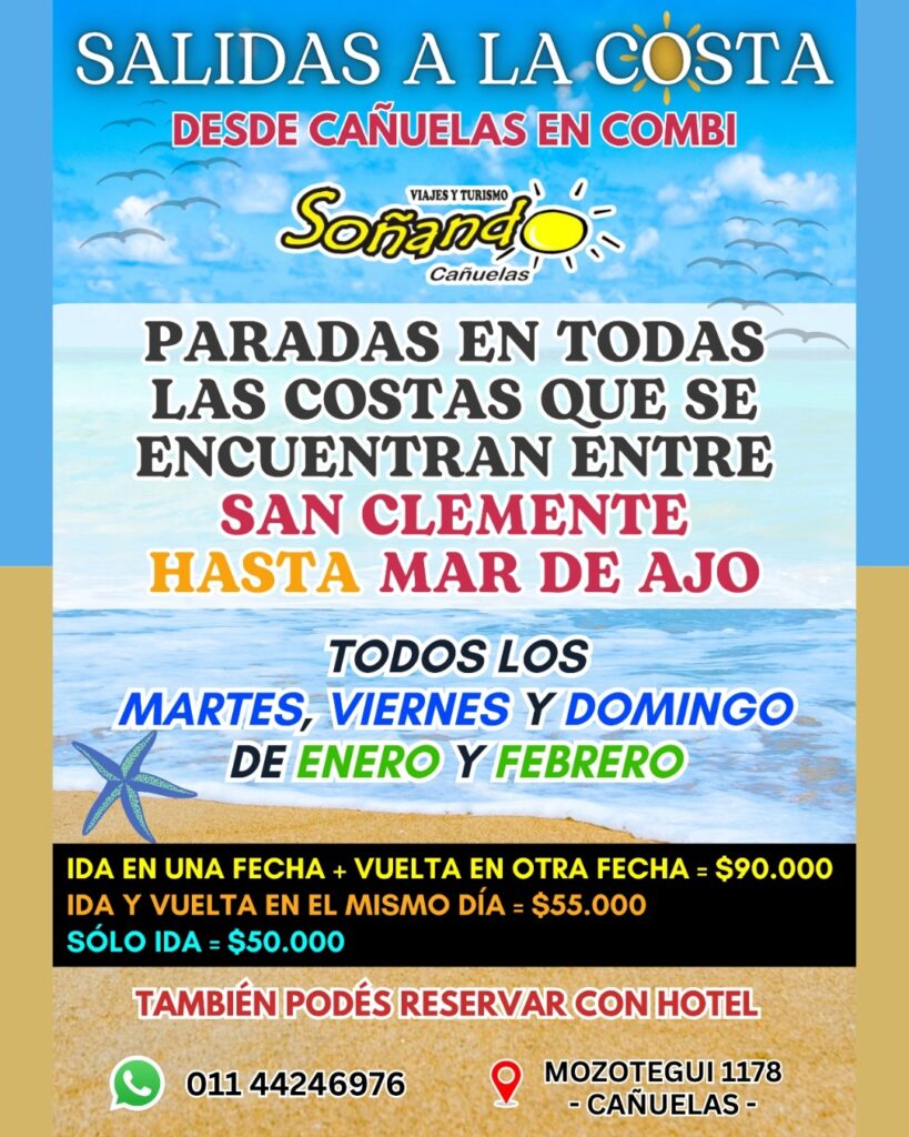 Con la llegada del verano, muchos vecinos de Cañuelas empiezan a organizar escapadas o vacaciones a la costa atlántica. En ese contexto, Soñando Viajes, una agencia con fuerte presencia local y años de trayectoria, vuelve a ofrecer una alternativa cómoda y accesible: salidas en combi a la costa durante enero y febrero, con partidas directas desde la ciudad.